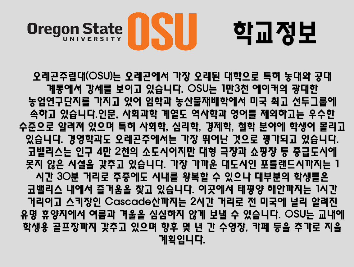 Oregon 학교 소개 입니다.